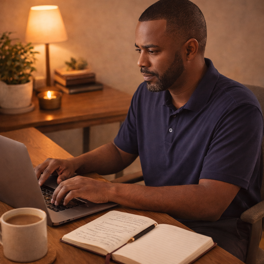 You'll be gently guided to reflect on what you're currently walking through — grief, transition, rebuilding, confusion, hope, or whatever you're facing.